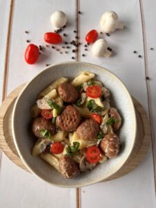 Rośliniak’a możesz także przygotować w formie mięsa mielonego do sosu np. Bolognese. Przygotowanie jak w powyższym przepisie. Do gotowej masy dodajemy odpowiedni sos pomidorowy praz warzywa i przyprawy ziołowe, i otrzymujemy doskonały sos Bolognese.
