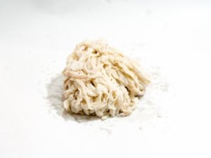 Dodajemy sól morską do peklowania dokładnie wyrabiamy masę. Odstawiamy do lodówki na 24 godziny. 4 godziny przed wyjęciem masy mięsnej z lodówki przygotowujemy jelita wieprzowe. Dokładnie je płuczemy i pozostawiamy w wodzie o temperaturze pokojowej. Wyjmiemy mięso i wyrabiamy je jeszcze przez chwilę.